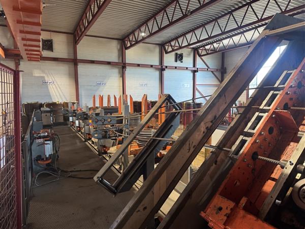 Description | Multi rotor straightening and shpaing machine, consisting of 4 synchronised pay-offs, automatic wire change over, 4x rotors, 12m table, 12m mobile collection trolley, and automatic bending tooling change over |
